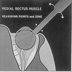 oblique muscles, the A-scan probe is placed opposite the muscle on